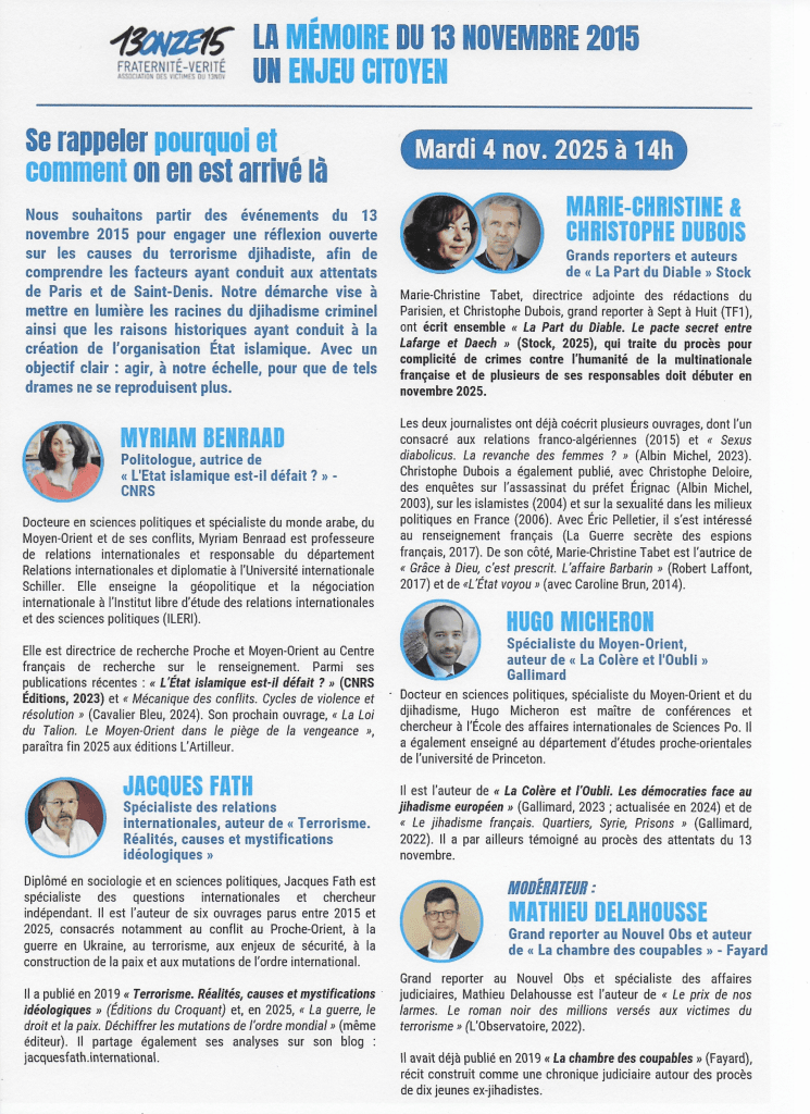 Voici le programme et les intervenants de la deuxième table ronde du colloque du 4 novembre :